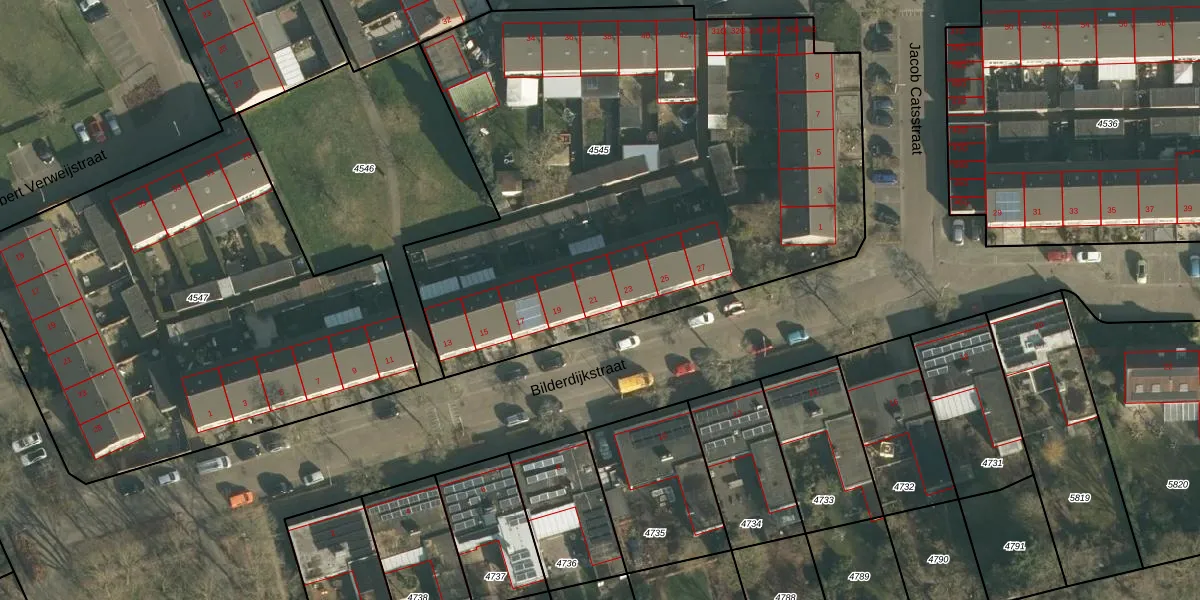 Het perceel waarop Bilderdijkstraat 21 staat heeft een oppervlakte van 3448 m². Dit is een zeer groot perceel. De perceeloppervlakte wordt geregistreerd door het Kadaster. Gedetailleerde informatie over de maten van dit perceel kunt u vinden in het rapport Kadastrale kaart met maatvoering van Bilderdijkstraat 21.