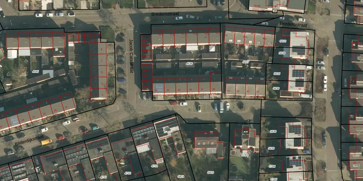 Het perceel waarop Bilderdijkstraat 33 staat heeft een oppervlakte van 1790 m². Dit is een zeer groot perceel. De perceeloppervlakte wordt geregistreerd door het Kadaster. Gedetailleerde informatie over de maten van dit perceel kunt u vinden in het rapport Kadastrale kaart met maatvoering van Bilderdijkstraat 33.
