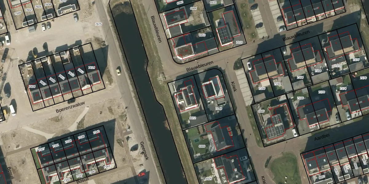Het perceel waarop Blauwbleuren 15 staat heeft een oppervlakte van 404 m². Dit is een groot perceel. De perceeloppervlakte wordt geregistreerd door het Kadaster. Gedetailleerde informatie over de maten van dit perceel kunt u vinden in het rapport Kadastrale kaart met maatvoering van Blauwbleuren 15.