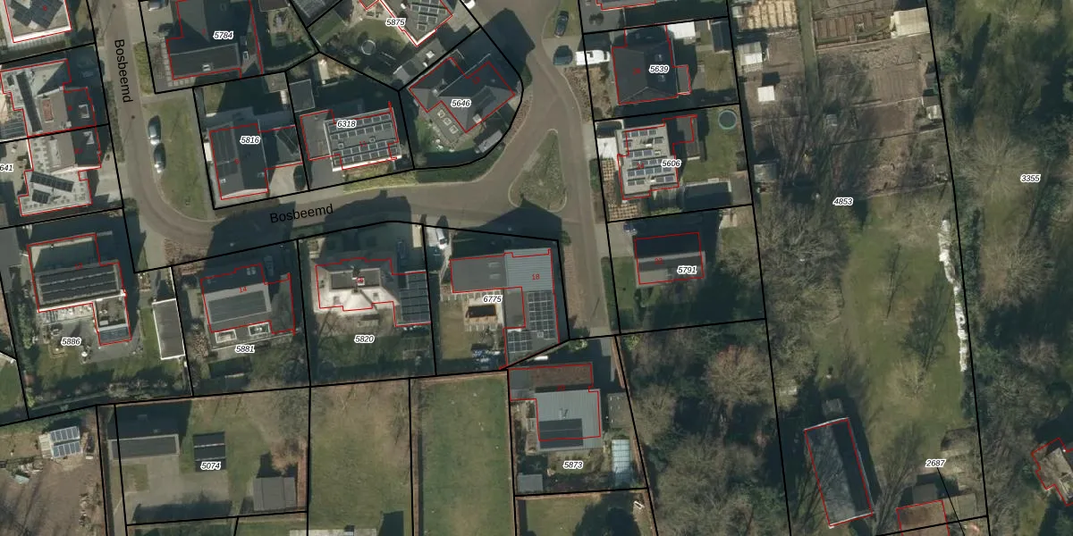 Het perceel waarop Bosbeemd 18 staat heeft een oppervlakte van 614 m². Dit is een groot perceel. De perceeloppervlakte wordt geregistreerd door het Kadaster. Gedetailleerde informatie over de maten van dit perceel kunt u vinden in het rapport Kadastrale kaart met maatvoering van Bosbeemd 18.