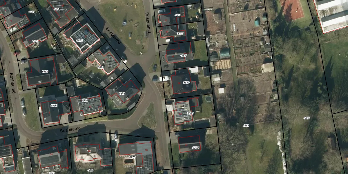 Het perceel waarop Bosbeemd 26 staat heeft een oppervlakte van 449 m². Dit is een groot perceel. De perceeloppervlakte wordt geregistreerd door het Kadaster. Gedetailleerde informatie over de maten van dit perceel kunt u vinden in het rapport Kadastrale kaart met maatvoering van Bosbeemd 26.