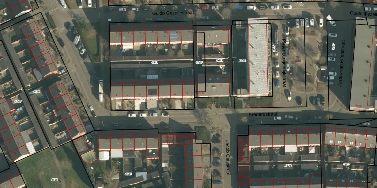 Brederostraat 13 is gelegen op kadastraal perceel VMN00H4543. Deze kadastrale aanduiding is uniek en wordt gebruikt door het Kadaster om eigendomsrechten en andere zakelijke rechten vast te leggen. Het perceel maakt onderdeel uit van de kadastrale gemeente Vlijmen.