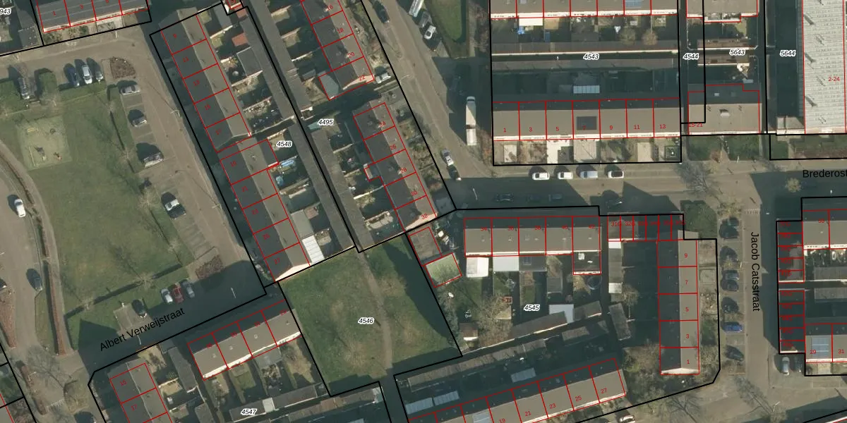 Brederostraat 32 is gelegen op kadastraal perceel VMN00H4495. Deze kadastrale aanduiding is uniek en wordt gebruikt door het Kadaster om eigendomsrechten en andere zakelijke rechten vast te leggen. Het perceel maakt onderdeel uit van de kadastrale gemeente Vlijmen.