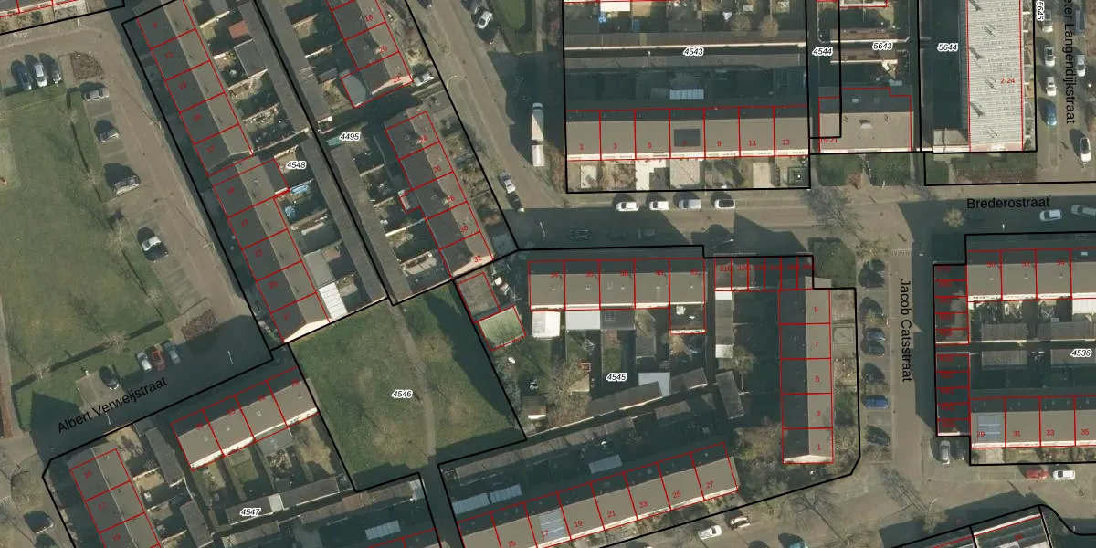 Brederostraat 34 is gelegen op kadastraal perceel VMN00H4545. Deze kadastrale aanduiding is uniek en wordt gebruikt door het Kadaster om eigendomsrechten en andere zakelijke rechten vast te leggen. Het perceel maakt onderdeel uit van de kadastrale gemeente Vlijmen.
