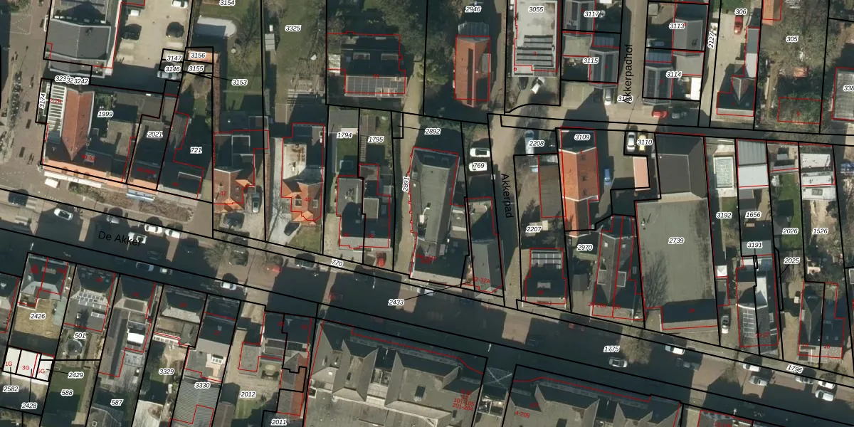 Het perceel waarop De Akker 34-E staat heeft een oppervlakte van 626 m². Dit is een groot perceel. De perceeloppervlakte wordt geregistreerd door het Kadaster. Gedetailleerde informatie over de maten van dit perceel kunt u vinden in het rapport Kadastrale kaart met maatvoering van De Akker 34-E.