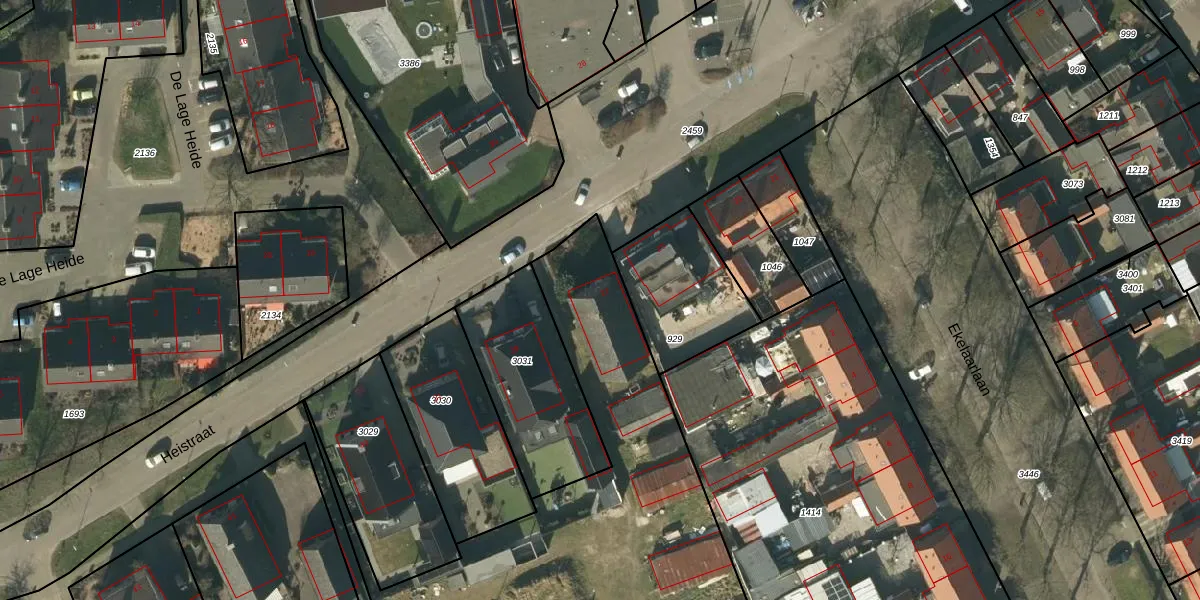 Het perceel waarop Heistraat 27 staat heeft een oppervlakte van 5918 m². Dit is een zeer groot perceel. De perceeloppervlakte wordt geregistreerd door het Kadaster. Gedetailleerde informatie over de maten van dit perceel kunt u vinden in het rapport Kadastrale kaart met maatvoering van Heistraat 27.