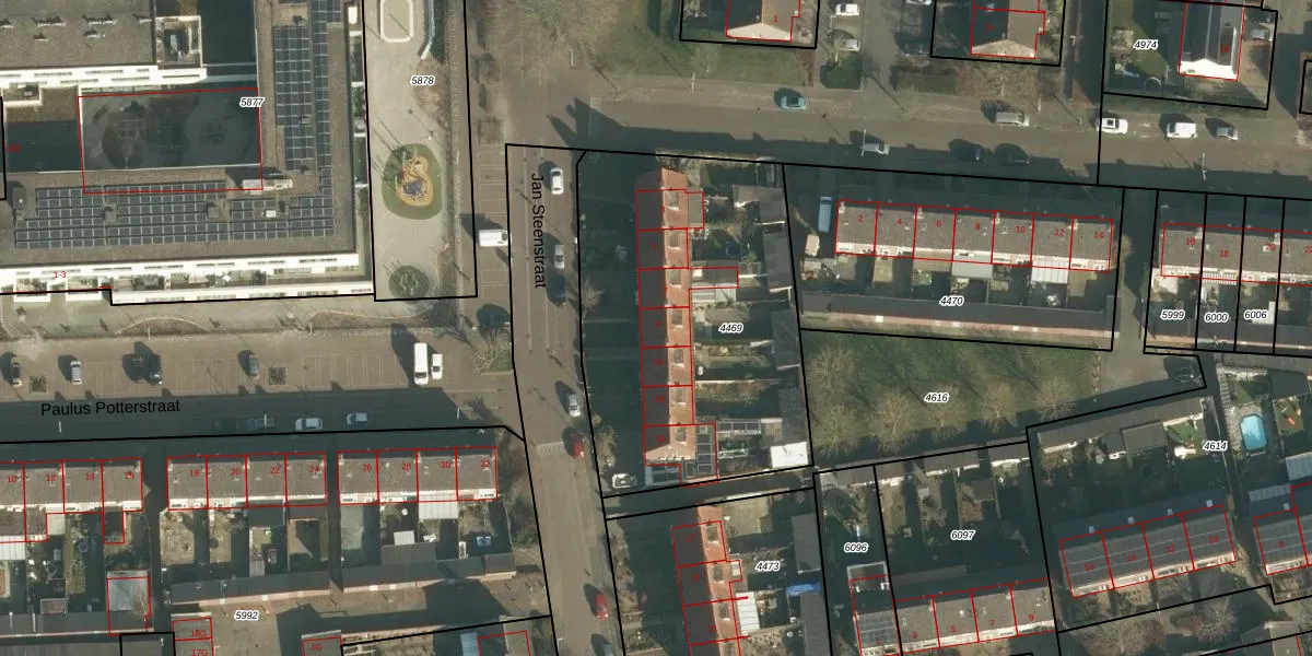 Het perceel waarop Jan Steenstraat 9 staat heeft een oppervlakte van 1630 m². Dit is een zeer groot perceel. De perceeloppervlakte wordt geregistreerd door het Kadaster. Gedetailleerde informatie over de maten van dit perceel kunt u vinden in het rapport Kadastrale kaart met maatvoering van Jan Steenstraat 9.