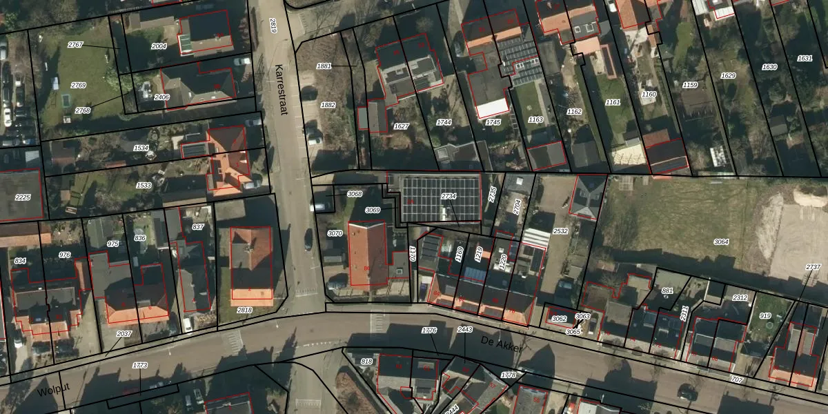 Karrestraat 2-A is gelegen op kadastraal perceel VMN00L2735. Deze kadastrale aanduiding is uniek en wordt gebruikt door het Kadaster om eigendomsrechten en andere zakelijke rechten vast te leggen. Het perceel maakt onderdeel uit van de kadastrale gemeente Vlijmen.