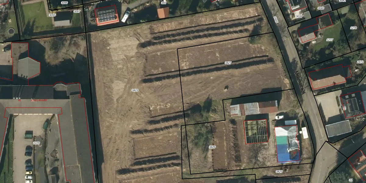 Het adres is gelegen op perceel 3427 in de sectie L en de kadastrale gemeente Vlijmen. De kadastrale aanduiding is aldus VMN00-L-3427. Het perceel is 2055 m² groot. Dat is kleiner dan de gemiddelde perceeloppervlakte in Vlijmen, dat op 2481,15 m² ligt. Het kleinste perceel in de kadastrale gemeente is 0 m² groot. De grootste perceeloppervlakte is 20,0 ha. Op het perceel liggen in totaal 12 adressen. De huidige grenzen van het perceel zijn digitaal in de Basisregistratie Kadaster (BRK) geregistreerd op 10-09-2024.