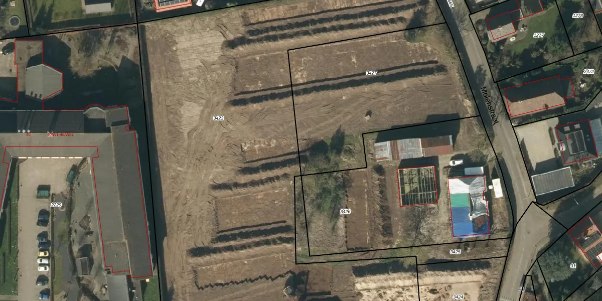 Het adres is gelegen op perceel 3427 in de sectie L en de kadastrale gemeente Vlijmen. De kadastrale aanduiding is aldus VMN00-L-3427. Het perceel is 2055 m² groot. Dat is kleiner dan de gemiddelde perceeloppervlakte in Vlijmen, dat op 2481,15 m² ligt. Het kleinste perceel in de kadastrale gemeente is 0 m² groot. De grootste perceeloppervlakte is 20,0 ha. Er zijn 12 adressen aanwezig op het perceel. In de Basisregistratie Kadaster (BRK) werden de grenzen van het perceel geregistreerd op 10-09-2024.
