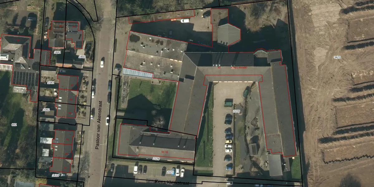 Het perceel waarop Kees Klerxstraat 40-W29 staat heeft een oppervlakte van 7543 m². Dit is een zeer groot perceel. De perceeloppervlakte wordt geregistreerd door het Kadaster. Gedetailleerde informatie over de maten van dit perceel kunt u vinden in het rapport Kadastrale kaart met maatvoering van Kees Klerxstraat 40-W29.