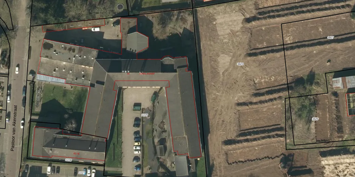 Het perceel waarop het adres ligt is VMN00-L-2229. De afkorting 'VMN00' staat voor kadastrale gemeente Vlijmen. Het perceel is met 7543 m² relatief groot. Het gemiddelde ligt in de kadastrale gemeente Vlijmen op 2481,15 m². Het kleinste perceel in de kadastrale gemeente is 0 m² groot. De grootste perceeloppervlakte is 20,0 ha. Er zijn 89 adressen aanwezig op het perceel. In de Basisregistratie Kadaster (BRK) werden de grenzen van het perceel geregistreerd op 27-12-2023.