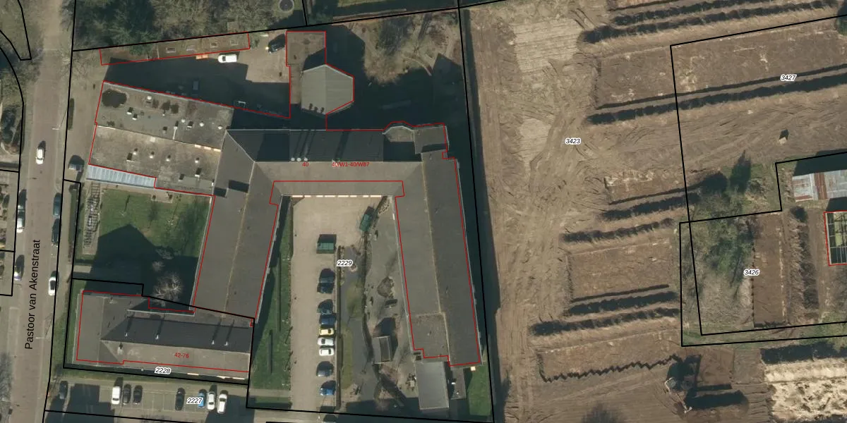 Het perceel waarop het adres ligt is VMN00-L-2229. De afkorting 'VMN00' staat voor kadastrale gemeente Vlijmen. Het perceel is met 7543 m² relatief groot. Het gemiddelde ligt in de kadastrale gemeente Vlijmen op 2481,15 m². Het kleinste perceel in de kadastrale gemeente is 0 m² groot. De grootste perceeloppervlakte is 20,0 ha. Er zijn 89 adressen aanwezig op het perceel. De huidige grenzen van het perceel zijn digitaal in de Basisregistratie Kadaster (BRK) geregistreerd op 27-12-2023.