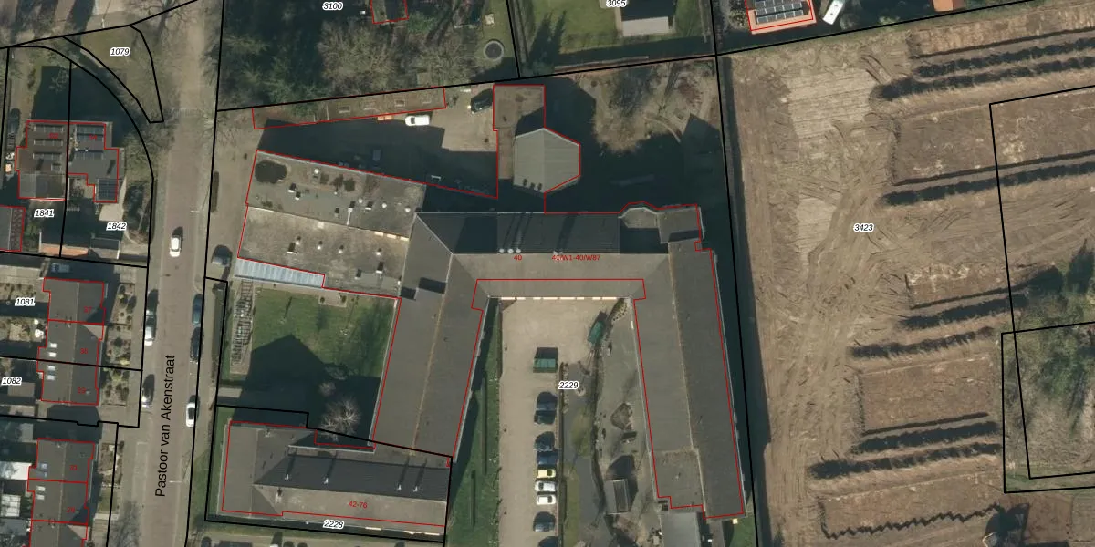 Het perceel waarop het adres ligt is VMN00-L-2229. De afkorting 'VMN00' staat voor kadastrale gemeente Vlijmen. Het perceel is met 7543 m² relatief groot. Het gemiddelde ligt in de kadastrale gemeente Vlijmen op 2481,15 m². De grootste perceeloppervlakte in de kadastrale gemeente is 20,0 ha. De kleinste oppervlakte bedraagt 0 m². Op het perceel zijn 89 adressen aanwezig. De huidige grenzen van het perceel zijn digitaal in de Basisregistratie Kadaster (BRK) geregistreerd op 27-12-2023.