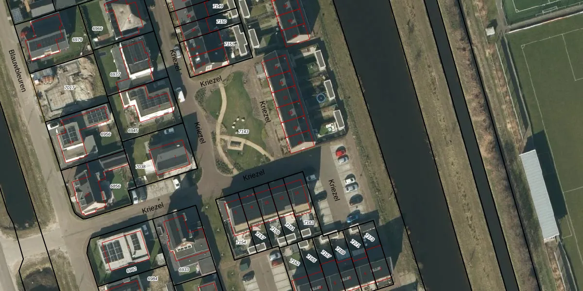 Het perceel waarop Kriezel 16 staat heeft een oppervlakte van 2,1 ha. Dit is een zeer groot perceel. De perceeloppervlakte wordt geregistreerd door het Kadaster. Gedetailleerde informatie over de maten van dit perceel kunt u vinden in het rapport Kadastrale kaart met maatvoering van Kriezel 16.