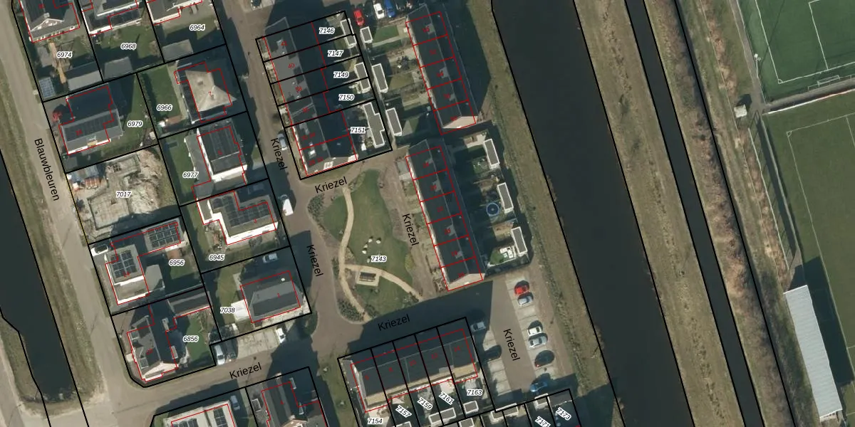 Het perceel waarop Kriezel 22 staat heeft een oppervlakte van 2,1 ha. Dit is een zeer groot perceel. De perceeloppervlakte wordt geregistreerd door het Kadaster. Gedetailleerde informatie over de maten van dit perceel kunt u vinden in het rapport Kadastrale kaart met maatvoering van Kriezel 22.