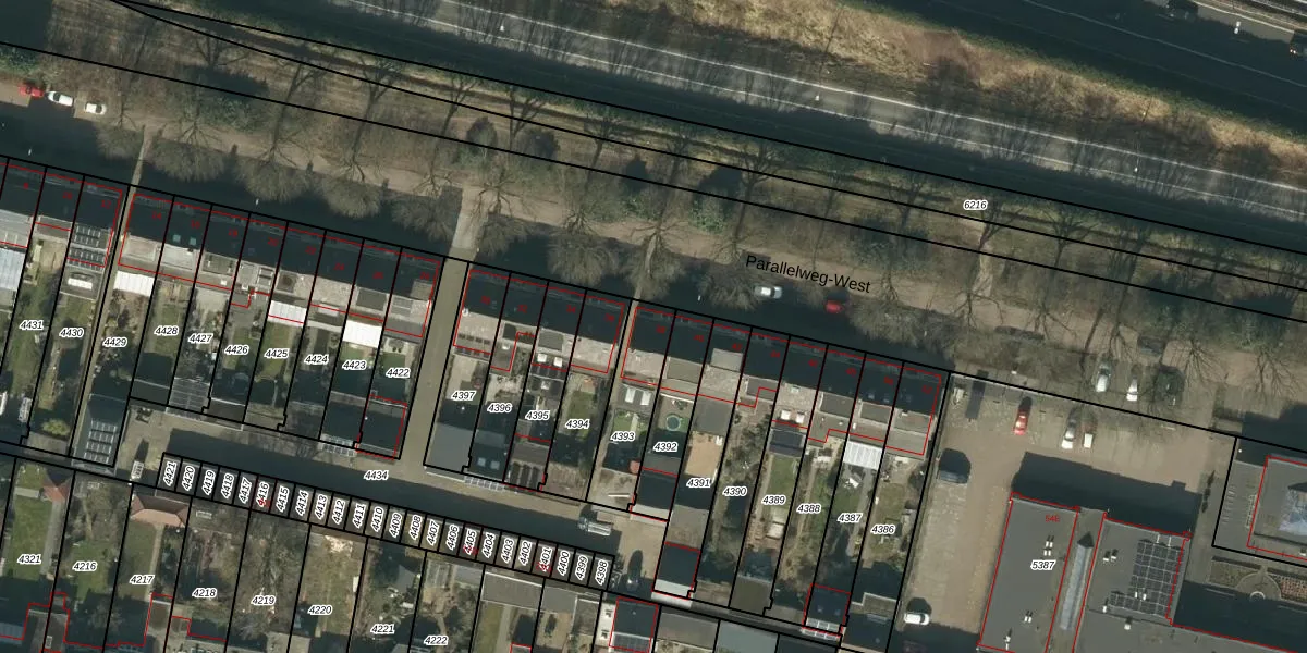 Parallelweg-West 38 is gelegen op kadastraal perceel VMN00H4393. Deze kadastrale aanduiding is uniek en wordt gebruikt door het Kadaster om eigendomsrechten en andere zakelijke rechten vast te leggen. Het perceel maakt onderdeel uit van de kadastrale gemeente Vlijmen.