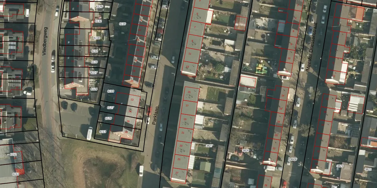 Parklaan 15 is gelegen op kadastraal perceel VMN00H3827. Deze kadastrale aanduiding is uniek en wordt gebruikt door het Kadaster om eigendomsrechten en andere zakelijke rechten vast te leggen. Het perceel maakt onderdeel uit van de kadastrale gemeente Vlijmen.