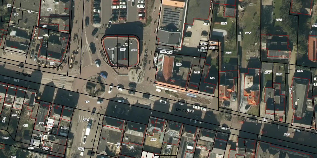 Het perceel waarop Plein 2 staat heeft een oppervlakte van 472 m². Dit is een groot perceel. De perceeloppervlakte wordt geregistreerd door het Kadaster. Gedetailleerde informatie over de maten van dit perceel kunt u vinden in het rapport Kadastrale kaart met maatvoering van Plein 2.