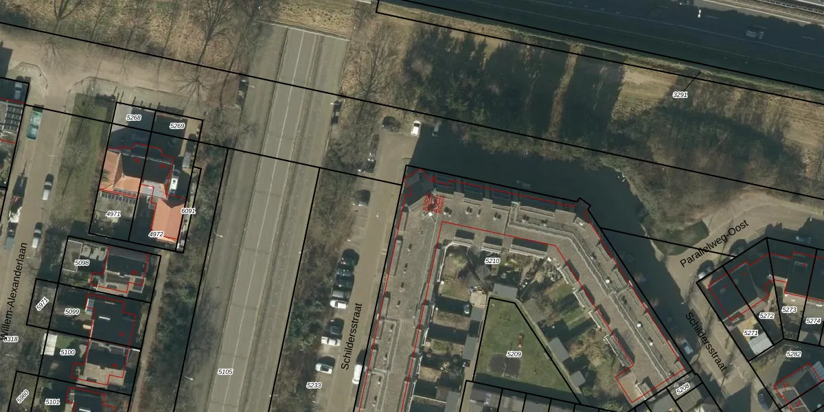 Het perceel waarop Schildersstraat 110 staat heeft een oppervlakte van 3303 m². Dit is een zeer groot perceel. De perceeloppervlakte wordt geregistreerd door het Kadaster. Gedetailleerde informatie over de maten van dit perceel kunt u vinden in het rapport Kadastrale kaart met maatvoering van Schildersstraat 110.