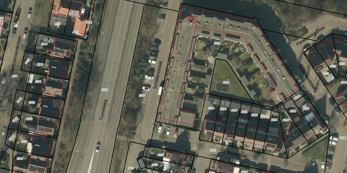 Het perceel waarop Schildersstraat 214 staat heeft een oppervlakte van 3303 m². Dit is een zeer groot perceel. De perceeloppervlakte wordt geregistreerd door het Kadaster. Gedetailleerde informatie over de maten van dit perceel kunt u vinden in het rapport Kadastrale kaart met maatvoering van Schildersstraat 214.
