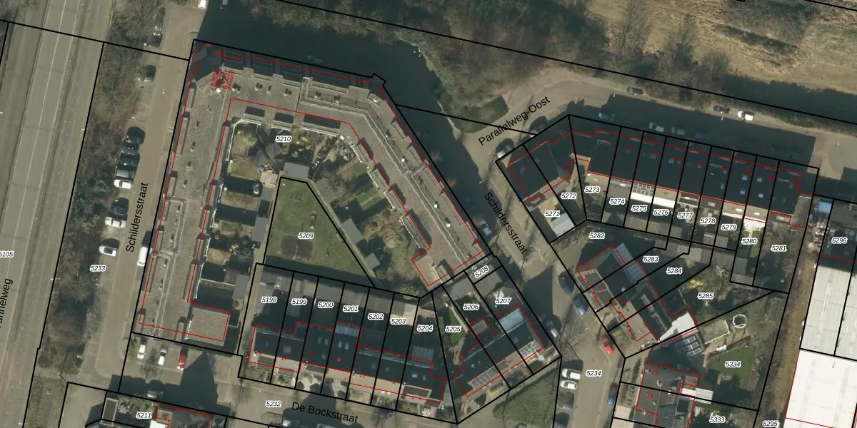Het perceel waarop Schildersstraat 302 staat heeft een oppervlakte van 3303 m². Dit is een zeer groot perceel. De perceeloppervlakte wordt geregistreerd door het Kadaster. Gedetailleerde informatie over de maten van dit perceel kunt u vinden in het rapport Kadastrale kaart met maatvoering van Schildersstraat 302.