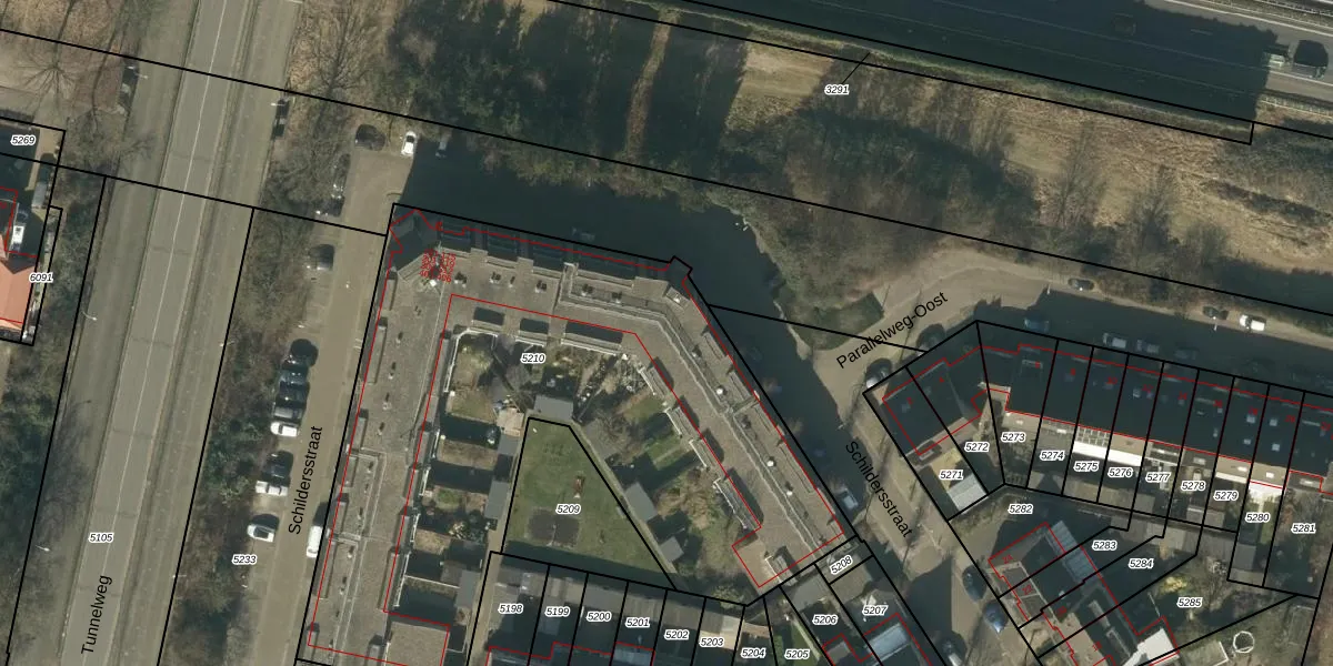 Het perceel waarop Schildersstraat 305 staat heeft een oppervlakte van 3303 m². Dit is een zeer groot perceel. De perceeloppervlakte wordt geregistreerd door het Kadaster. Gedetailleerde informatie over de maten van dit perceel kunt u vinden in het rapport Kadastrale kaart met maatvoering van Schildersstraat 305.