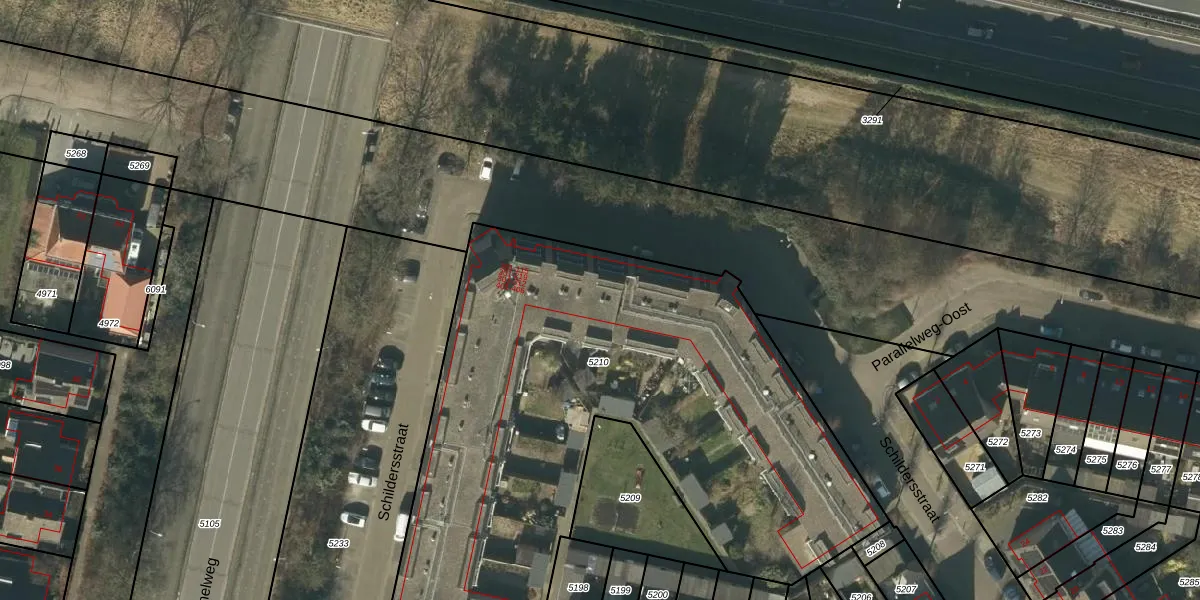 Het perceel waarop Schildersstraat 308 staat heeft een oppervlakte van 3303 m². Dit is een zeer groot perceel. De perceeloppervlakte wordt geregistreerd door het Kadaster. Gedetailleerde informatie over de maten van dit perceel kunt u vinden in het rapport Kadastrale kaart met maatvoering van Schildersstraat 308.