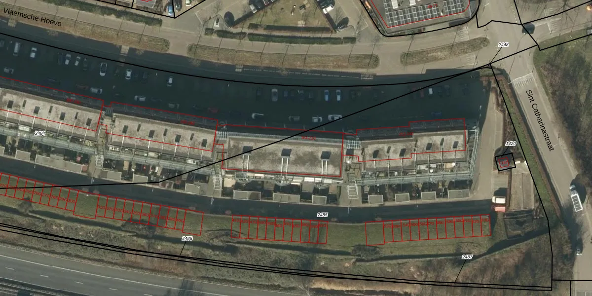 Het perceel waarop Vlaemsche Hoeve 182 staat heeft een oppervlakte van 7748 m². Dit is een zeer groot perceel. De perceeloppervlakte wordt geregistreerd door het Kadaster. Gedetailleerde informatie over de maten van dit perceel kunt u vinden in het rapport Kadastrale kaart met maatvoering van Vlaemsche Hoeve 182.