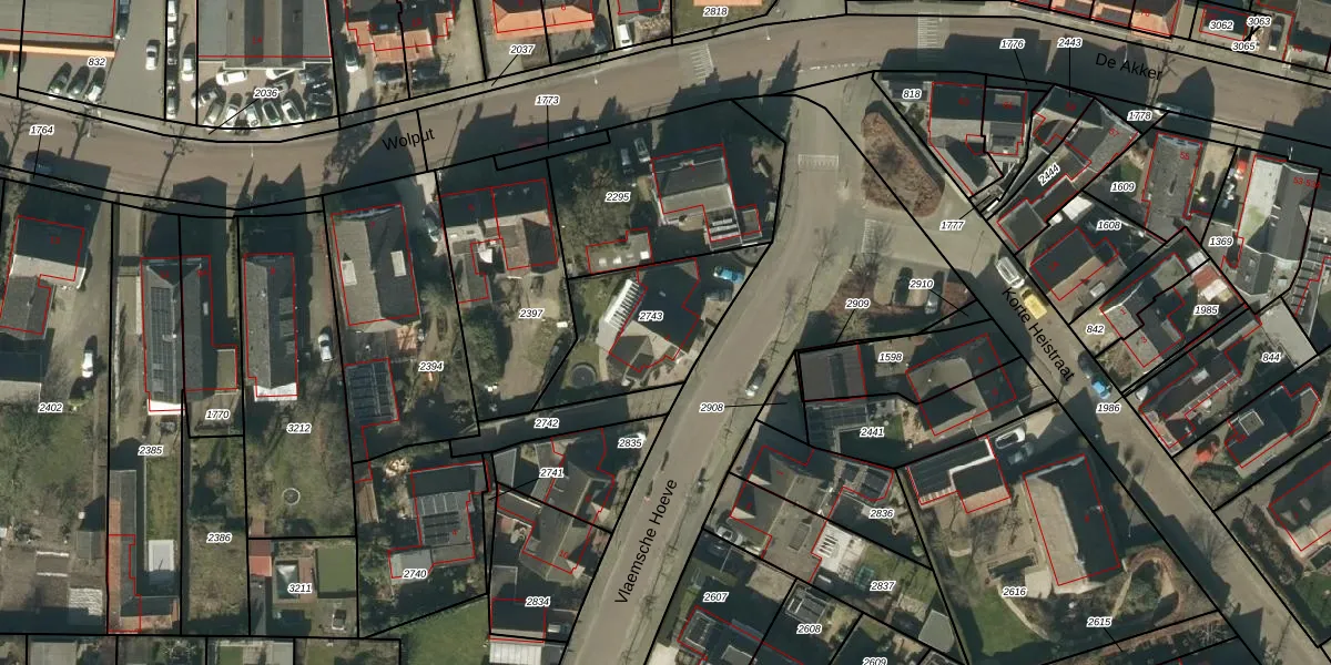 Gebruik de zoekbalk of klik op een perceel voor informatie over de adressen binnen dit perceel.