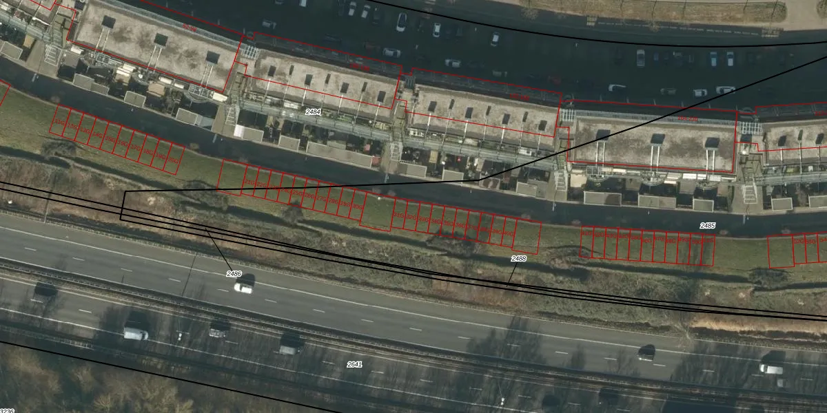 Het perceel waarop het adres ligt is VMN00-L-2485. De afkorting 'VMN00' staat voor kadastrale gemeente Vlijmen. Het perceel is met 7748 m² relatief groot. Het gemiddelde ligt in de kadastrale gemeente Vlijmen op 2481,86 m². De grootste perceeloppervlakte in de kadastrale gemeente is 20,0 ha. De kleinste oppervlakte bedraagt 0 m². Op het perceel liggen in totaal 71 adressen. De huidige grenzen van het perceel zijn digitaal in de Basisregistratie Kadaster (BRK) geregistreerd op 23-12-2009.