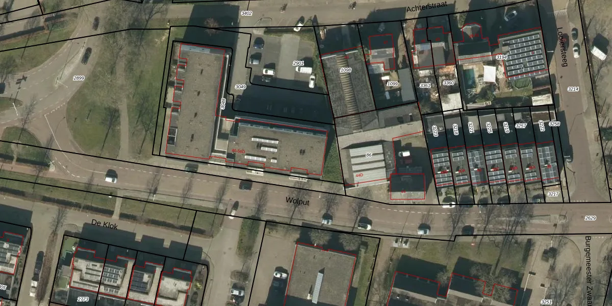 Het perceel waarop Wolput 48 staat heeft een oppervlakte van 1480 m². Dit is een zeer groot perceel. De perceeloppervlakte wordt geregistreerd door het Kadaster. Gedetailleerde informatie over de maten van dit perceel kunt u vinden in het rapport Kadastrale kaart met maatvoering van Wolput 48.