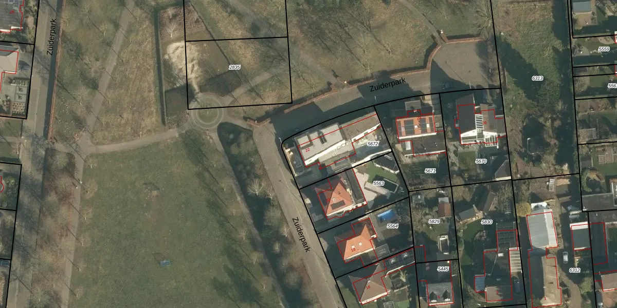 Zuiderpark 22 is gelegen op kadastraal perceel VMN00H5672. Deze kadastrale aanduiding is uniek en wordt gebruikt door het Kadaster om eigendomsrechten en andere zakelijke rechten vast te leggen. Het perceel maakt onderdeel uit van de kadastrale gemeente Vlijmen.