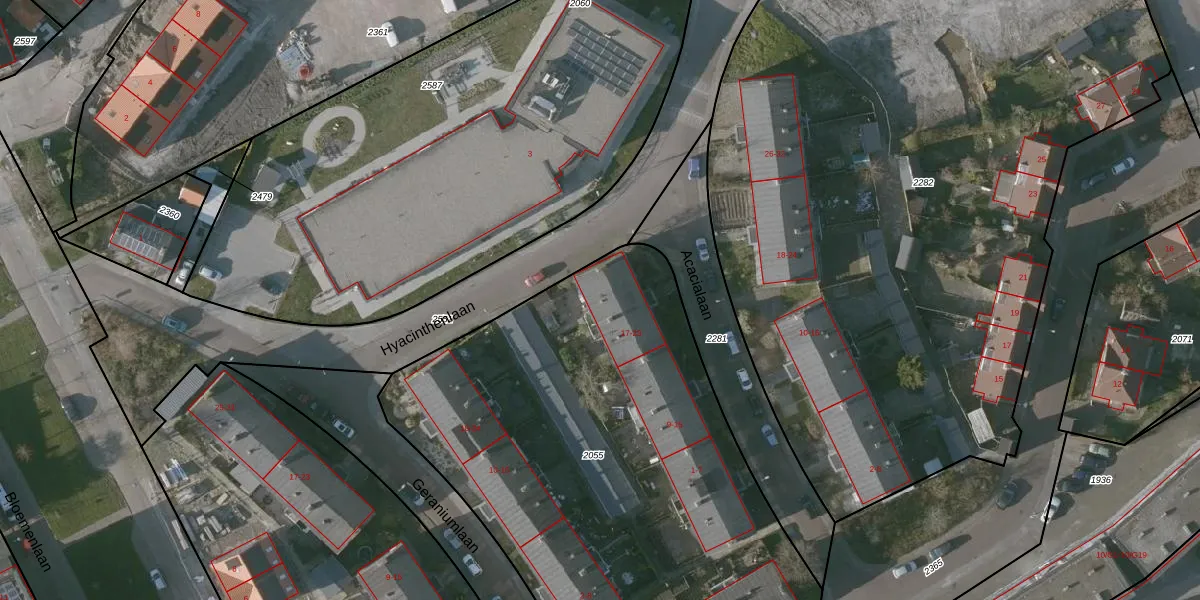 Het perceel waarop Acacialaan 23 staat heeft een oppervlakte van 3200 m². Dit is een zeer groot perceel. De perceeloppervlakte wordt geregistreerd door het Kadaster. Gedetailleerde informatie over de maten van dit perceel kunt u vinden in het rapport Kadastrale kaart met maatvoering van Acacialaan 23.