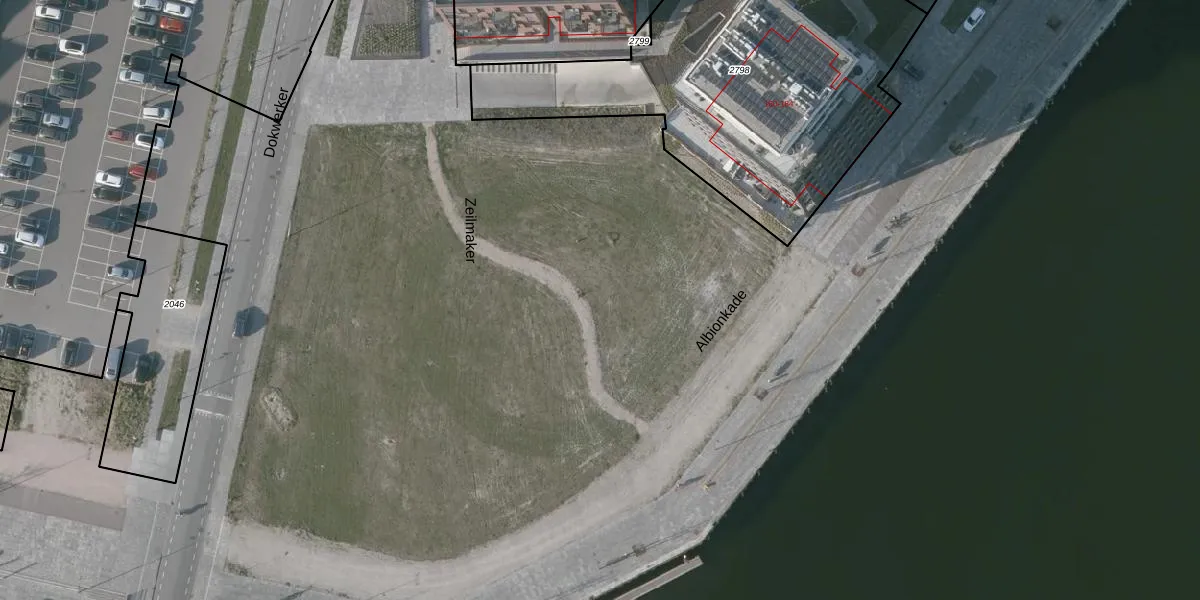 Het perceel waarop Albionkade 39 staat heeft een oppervlakte van 10,6 ha. Dit is een zeer groot perceel. De perceeloppervlakte wordt geregistreerd door het Kadaster. Gedetailleerde informatie over de maten van dit perceel kunt u vinden in het rapport Kadastrale kaart met maatvoering van Albionkade 39.