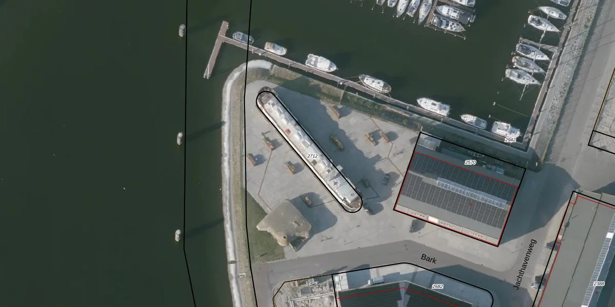 Bark 1 is gelegen op kadastraal perceel VSG00C2712. Deze kadastrale aanduiding is uniek en wordt gebruikt door het Kadaster om eigendomsrechten en andere zakelijke rechten vast te leggen. Het perceel maakt onderdeel uit van de kadastrale gemeente Vlissingen.