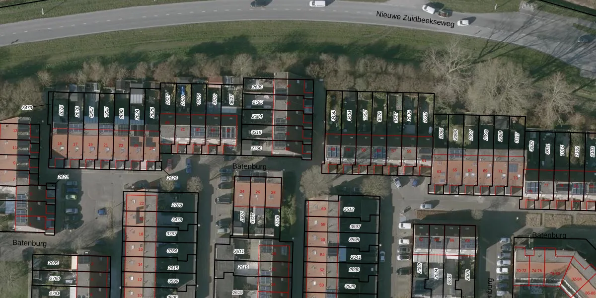 Het perceel waarop Batenburg 39 staat heeft een oppervlakte van 125 m². Dit is een middelgroot perceel. De perceeloppervlakte wordt geregistreerd door het Kadaster. Gedetailleerde informatie over de maten van dit perceel kunt u vinden in het rapport Kadastrale kaart met maatvoering van Batenburg 39.