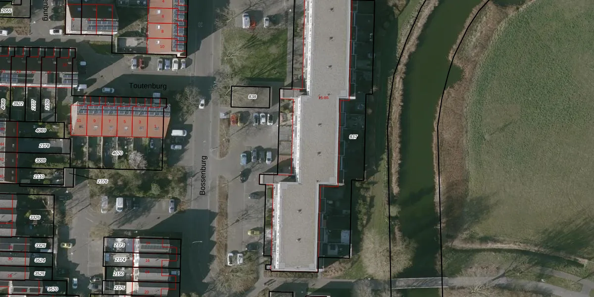 Het perceel waarop Bossenburg 33 staat heeft een oppervlakte van 2635 m². Dit is een zeer groot perceel. De perceeloppervlakte wordt geregistreerd door het Kadaster. Gedetailleerde informatie over de maten van dit perceel kunt u vinden in het rapport Kadastrale kaart met maatvoering van Bossenburg 33.