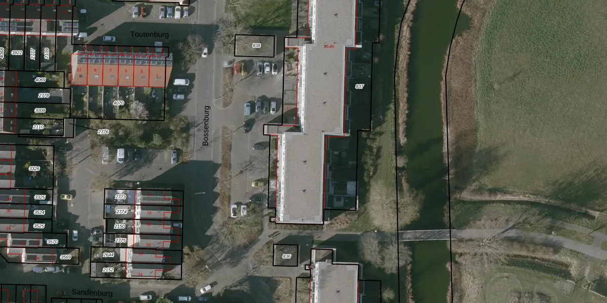 Het perceel waarop Bossenburg 77 staat heeft een oppervlakte van 2635 m². Dit is een zeer groot perceel. De perceeloppervlakte wordt geregistreerd door het Kadaster. Gedetailleerde informatie over de maten van dit perceel kunt u vinden in het rapport Kadastrale kaart met maatvoering van Bossenburg 77.