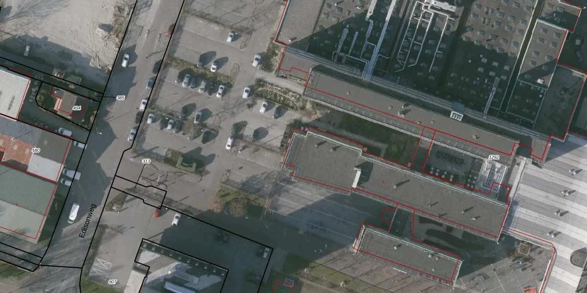 Het perceel waarop Edisonweg 4 staat heeft een oppervlakte van 3,8 ha. Dit is een zeer groot perceel. De perceeloppervlakte wordt geregistreerd door het Kadaster. Gedetailleerde informatie over de maten van dit perceel kunt u vinden in het rapport Kadastrale kaart met maatvoering van Edisonweg 4.