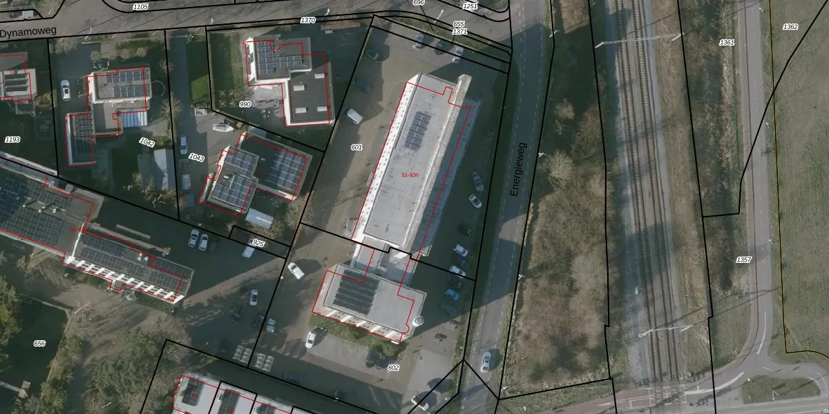 Het perceel waarop Edisonweg 53-b staat heeft een oppervlakte van 2020 m². Dit is een zeer groot perceel. De perceeloppervlakte wordt geregistreerd door het Kadaster. Gedetailleerde informatie over de maten van dit perceel kunt u vinden in het rapport Kadastrale kaart met maatvoering van Edisonweg 53-b.