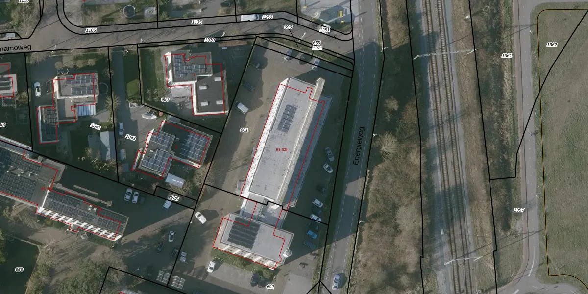 Het perceel waarop Edisonweg 53-c staat heeft een oppervlakte van 2020 m². Dit is een zeer groot perceel. De perceeloppervlakte wordt geregistreerd door het Kadaster. Gedetailleerde informatie over de maten van dit perceel kunt u vinden in het rapport Kadastrale kaart met maatvoering van Edisonweg 53-c.