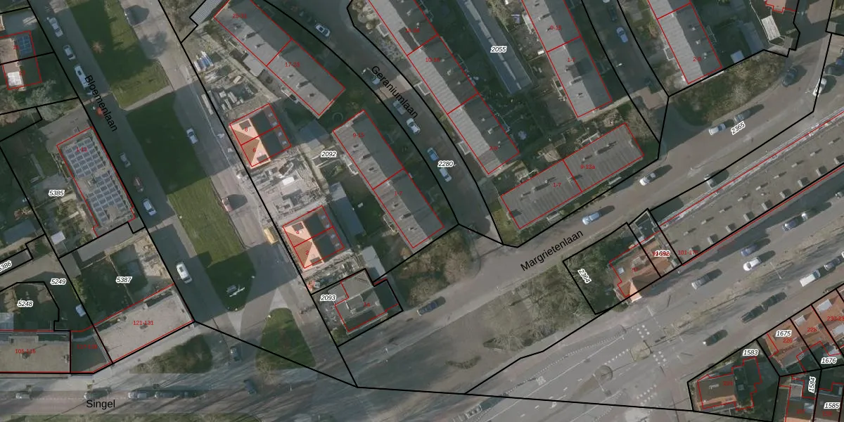 Het perceel waarop Geraniumlaan 1 staat heeft een oppervlakte van 2480 m². Dit is een zeer groot perceel. De perceeloppervlakte wordt geregistreerd door het Kadaster. Gedetailleerde informatie over de maten van dit perceel kunt u vinden in het rapport Kadastrale kaart met maatvoering van Geraniumlaan 1.