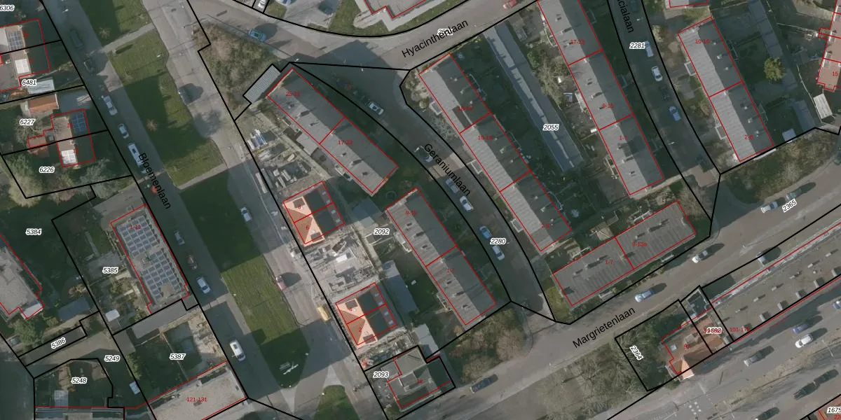 Geraniumlaan 13 is gelegen op kadastraal perceel VSG00B2092. Deze kadastrale aanduiding is uniek en wordt gebruikt door het Kadaster om eigendomsrechten en andere zakelijke rechten vast te leggen. Het perceel maakt onderdeel uit van de kadastrale gemeente Vlissingen.