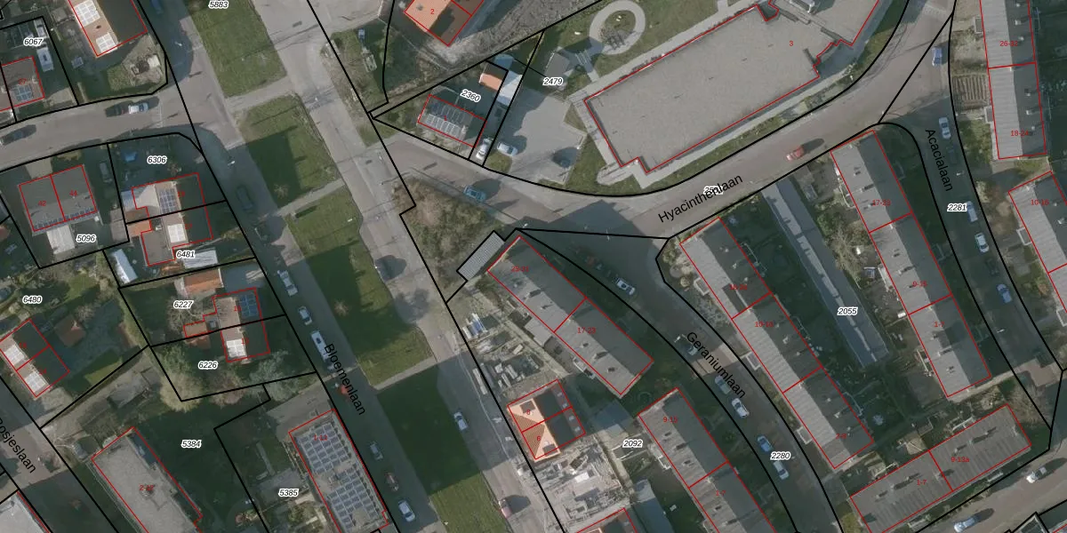 Het perceel waarop Geraniumlaan 29 staat heeft een oppervlakte van 2480 m². Dit is een zeer groot perceel. De perceeloppervlakte wordt geregistreerd door het Kadaster. Gedetailleerde informatie over de maten van dit perceel kunt u vinden in het rapport Kadastrale kaart met maatvoering van Geraniumlaan 29.