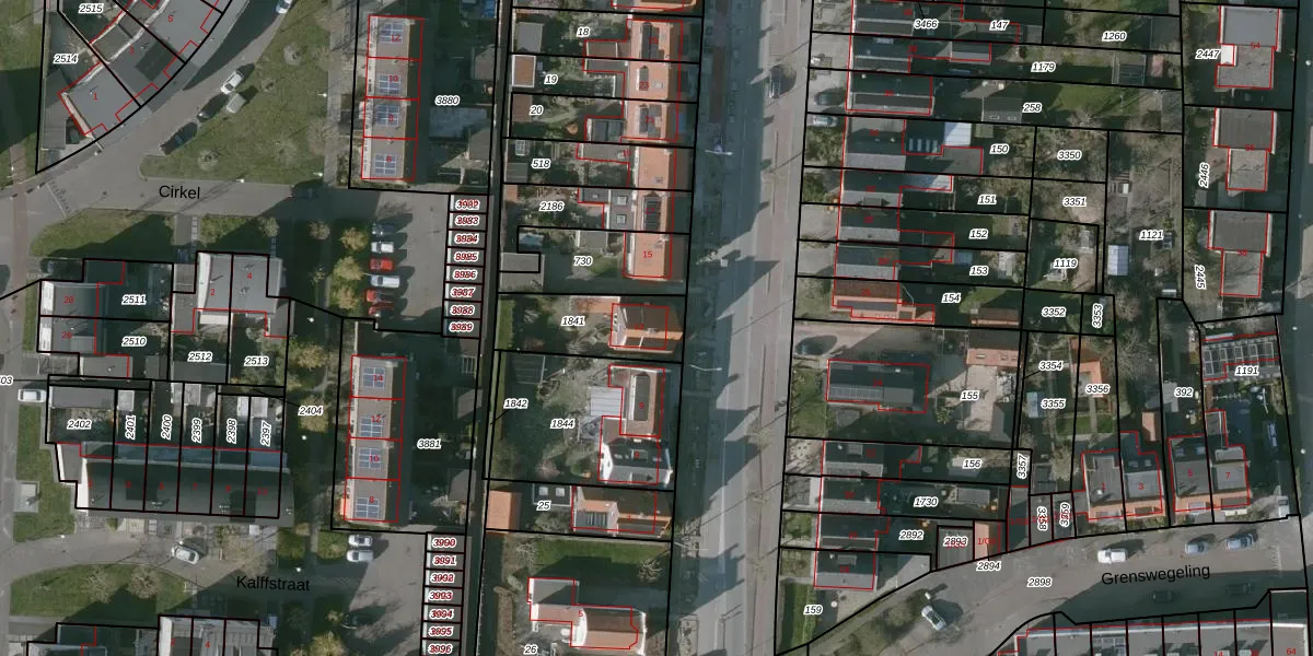 Gebruik de zoekbalk of klik op een perceel voor informatie over de adressen binnen dit perceel.