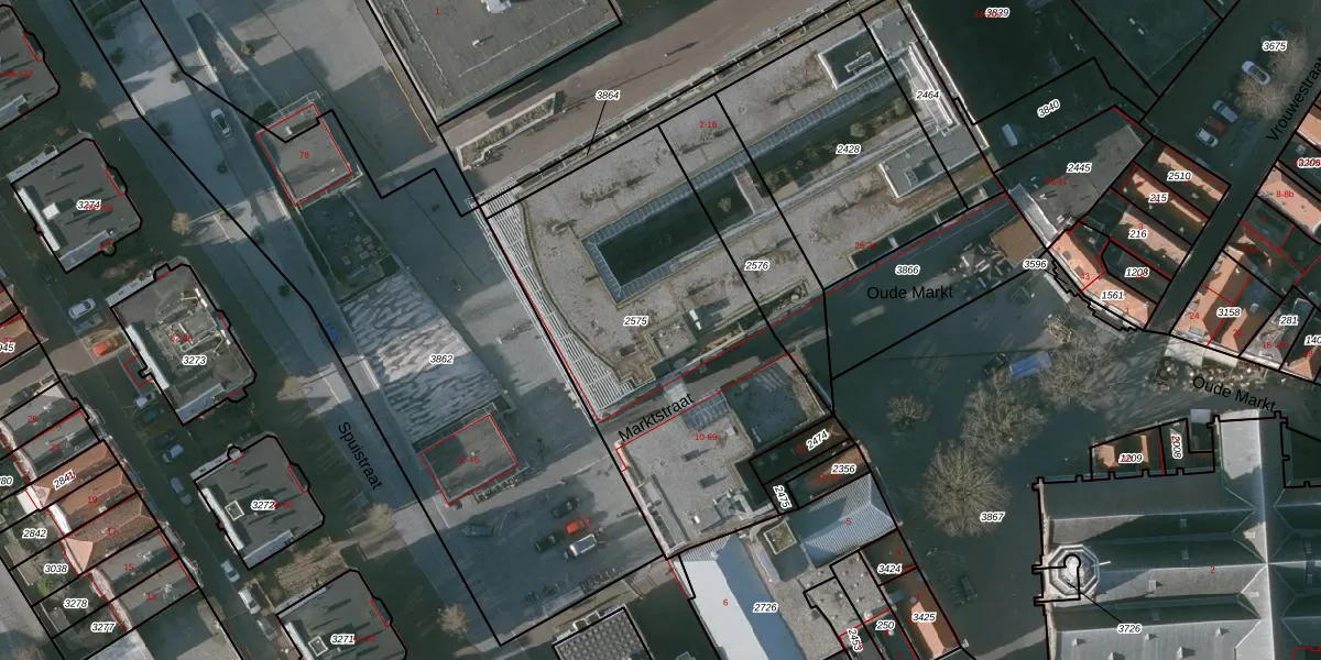 Het perceel waarop Marktstraat 15 staat heeft een oppervlakte van 1690 m². Dit is een zeer groot perceel. De perceeloppervlakte wordt geregistreerd door het Kadaster. Gedetailleerde informatie over de maten van dit perceel kunt u vinden in het rapport Kadastrale kaart met maatvoering van Marktstraat 15.