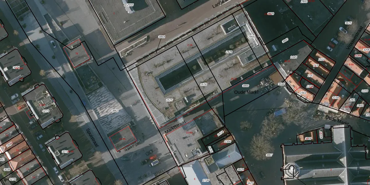 Het perceel waarop Marktstraat 55 staat heeft een oppervlakte van 1690 m². Dit is een zeer groot perceel. De perceeloppervlakte wordt geregistreerd door het Kadaster. Gedetailleerde informatie over de maten van dit perceel kunt u vinden in het rapport Kadastrale kaart met maatvoering van Marktstraat 55.
