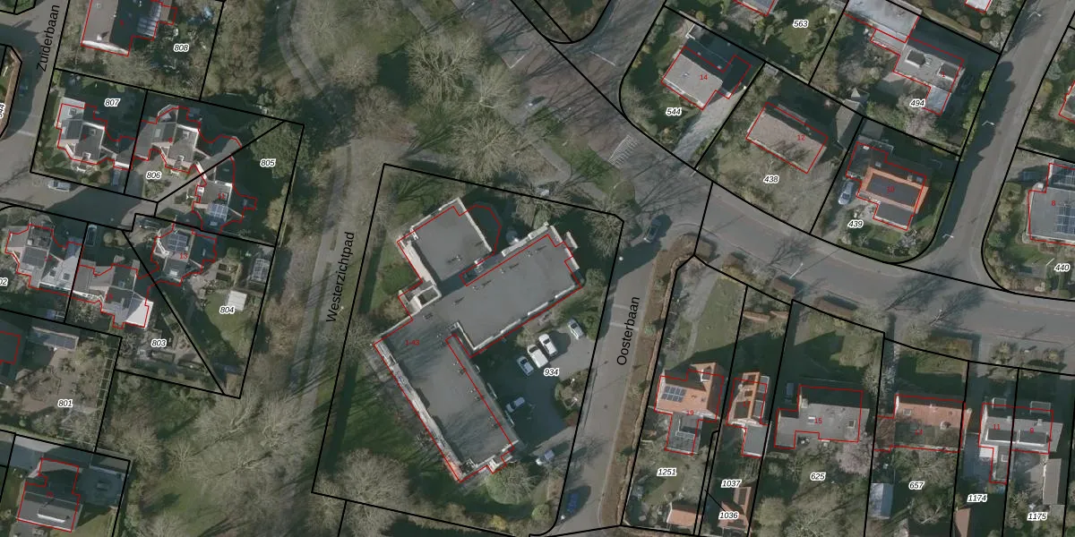 Het perceel waarop Oosterbaan 1 staat heeft een oppervlakte van 2838 m². Dit is een zeer groot perceel. De perceeloppervlakte wordt geregistreerd door het Kadaster. Gedetailleerde informatie over de maten van dit perceel kunt u vinden in het rapport Kadastrale kaart met maatvoering van Oosterbaan 1.
