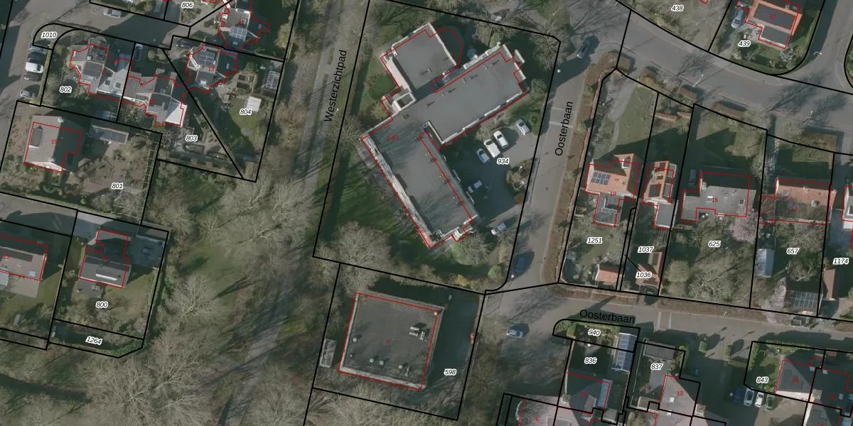 Het perceel waarop Oosterbaan 41 staat heeft een oppervlakte van 2838 m². Dit is een zeer groot perceel. De perceeloppervlakte wordt geregistreerd door het Kadaster. Gedetailleerde informatie over de maten van dit perceel kunt u vinden in het rapport Kadastrale kaart met maatvoering van Oosterbaan 41.